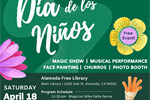 Día de los Niños 2026 18 Apr 2026 Join the Alameda Free Library (1550 Oak St.) on Saturday, April 18 from 12:30 pm - 4:30 pm for our annual Día de los Niños Celebration! Alameda Free Library, 1550 Oak St., Main Library 94501 Tagged as: , Adult, Kids & family, Main Library, Youth events, Music & arts, Children, Family, Toddlers, Community, Friends of the Alameda Free Library